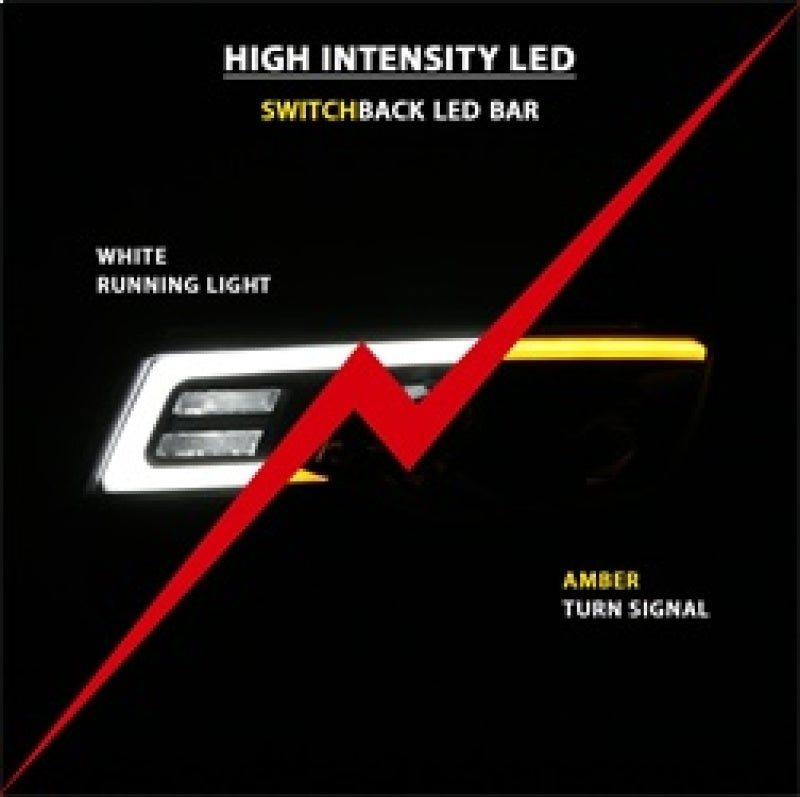 ANZO 2017-2018 Jeep Grand Cherokee Projector Headlights w/ Plank Style Switchback - Black w/ Amber