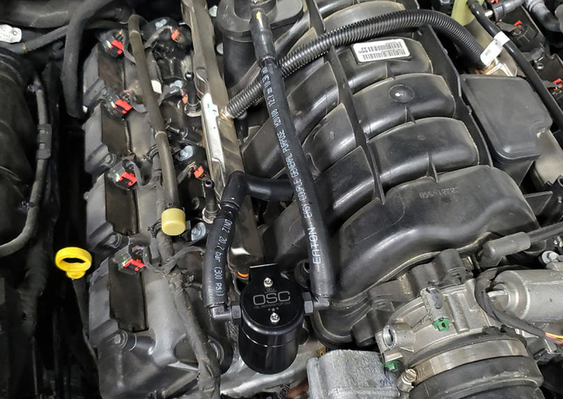 This item cannot be shipped to California due to Carb regulation with CA. During the process of venting crankcase pressure back through your intake track, large amounts of oil, in the form of vapors can gather/accumulate in your intake tube, intake manifold runners and even dilute your gas, lowering its octane level. This happens on all engines and is even worse with forced inducted vehicles (supercharged and turbocharged) as crankcase pressures are increased. To combat this, we have developed an oil separator of our own design. Milled from solid billet aluminum this is a rock-solid piece. It has a knurled tank base for easy removal to drain the spent oil and an O-ring seal to prevent any leaks. Filtering consists of a fine mesh stainless steel screen that traps fine oil vapors and releases them once heavy enough to fall. They then pass through a 1/2" thick 1/16th" aluminum honeycomb filter where they grow every larger and then fall into the bottom. By the time the oil gets through the filter it's too heavy to be passed on into the intake. The tank holds 3 oz of fluid, while that may not sound like a lot, you shouldn’t see that much oil in your PCV system. Drain it every 2000-3000 miles and you will never come close to filling it.