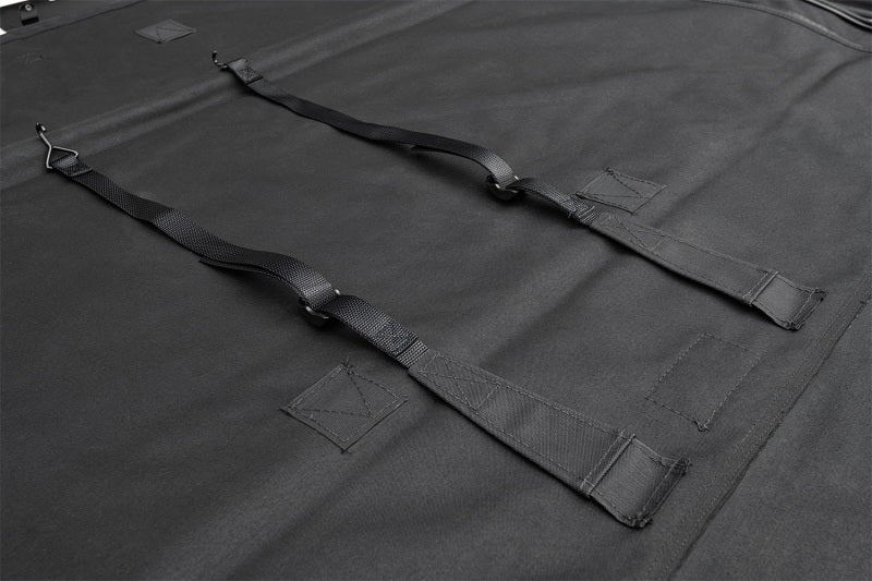 The Rampage Frameless Trail Top installs over the original equipment factory roll bar for a snug fit. This unique design allows for larger side windows and improved visibility with removable side and rear windows that quickly convert the soft top into an open Safari top. Windows use heavy duty molded tooth zippers and are easily replaced or removed. The windows are also stored in a special separation panel between the ceiling and roof top which is concealed to protect the windows from scratches or puncture. The fastback style offers improved aerodynamics and a quieter ride than factory bow style tops. The windshield channel, door surrounds and tail gate bar are required. These can be purchased separately.
